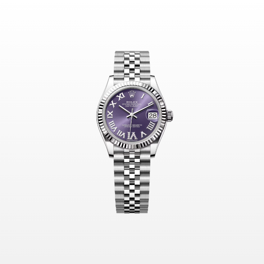 Rolex Datejust 31mm, Stainless Steel, Purple Roman VI Diamond, Jubilee, Ref# 278274-0026, dated 2025