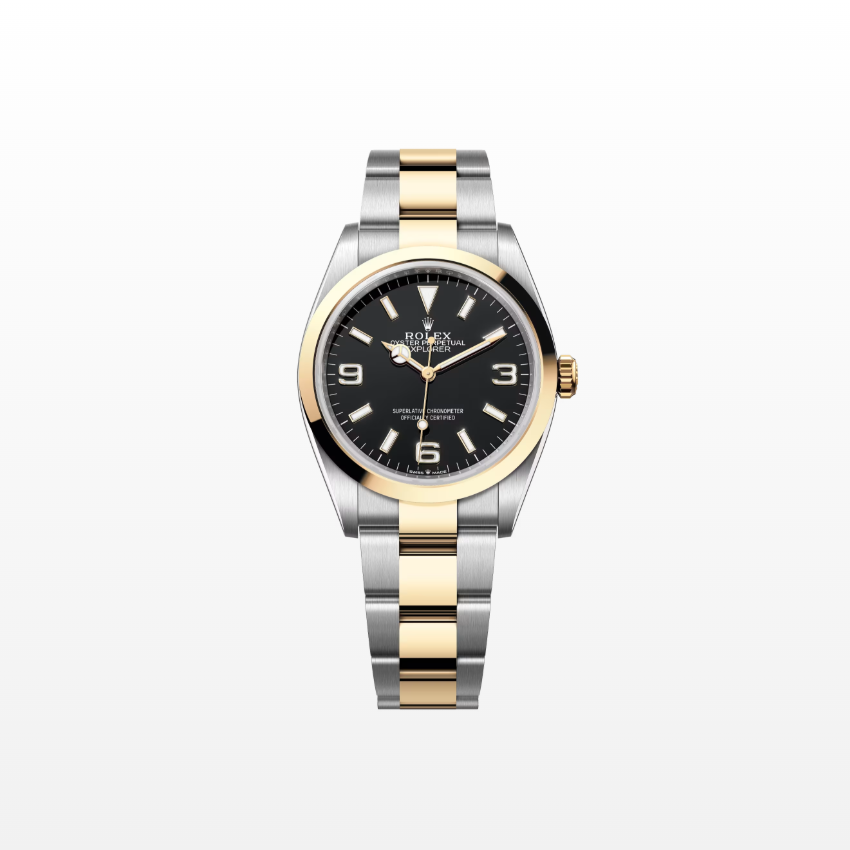 Rolex Explorer 36mm, 18k YG & Stainless Steel, Black, Ref# 124273, dated 2025