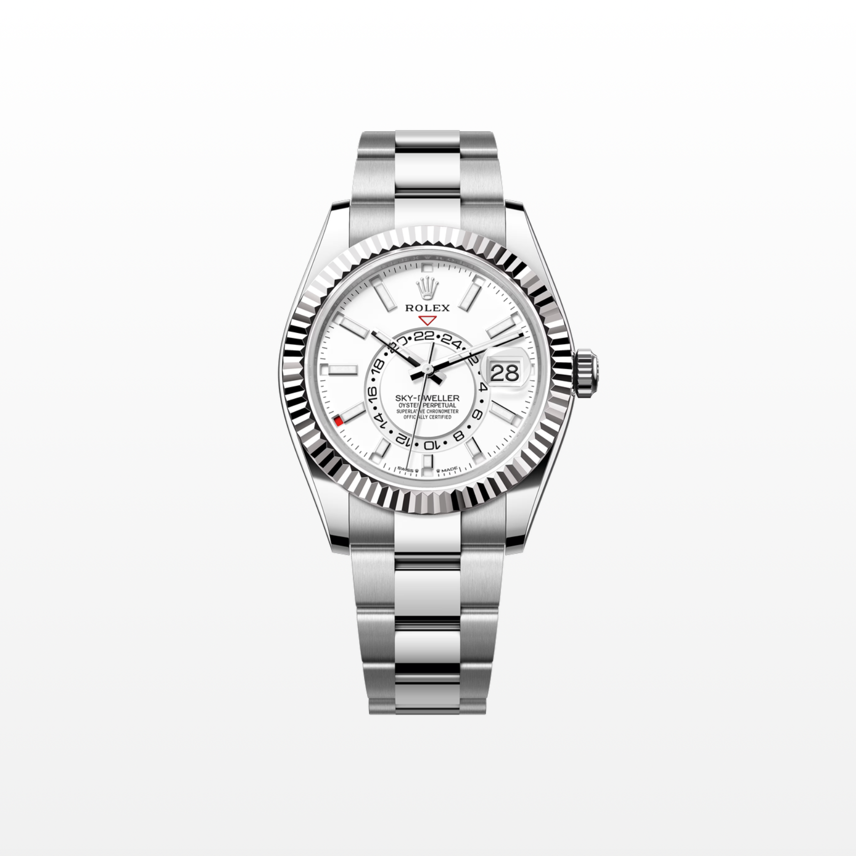 Rolex Sky-Dweller 42mm, 18k WG & Stainless Steel, White, Oyster, Ref# 336934-0003, dated 2025