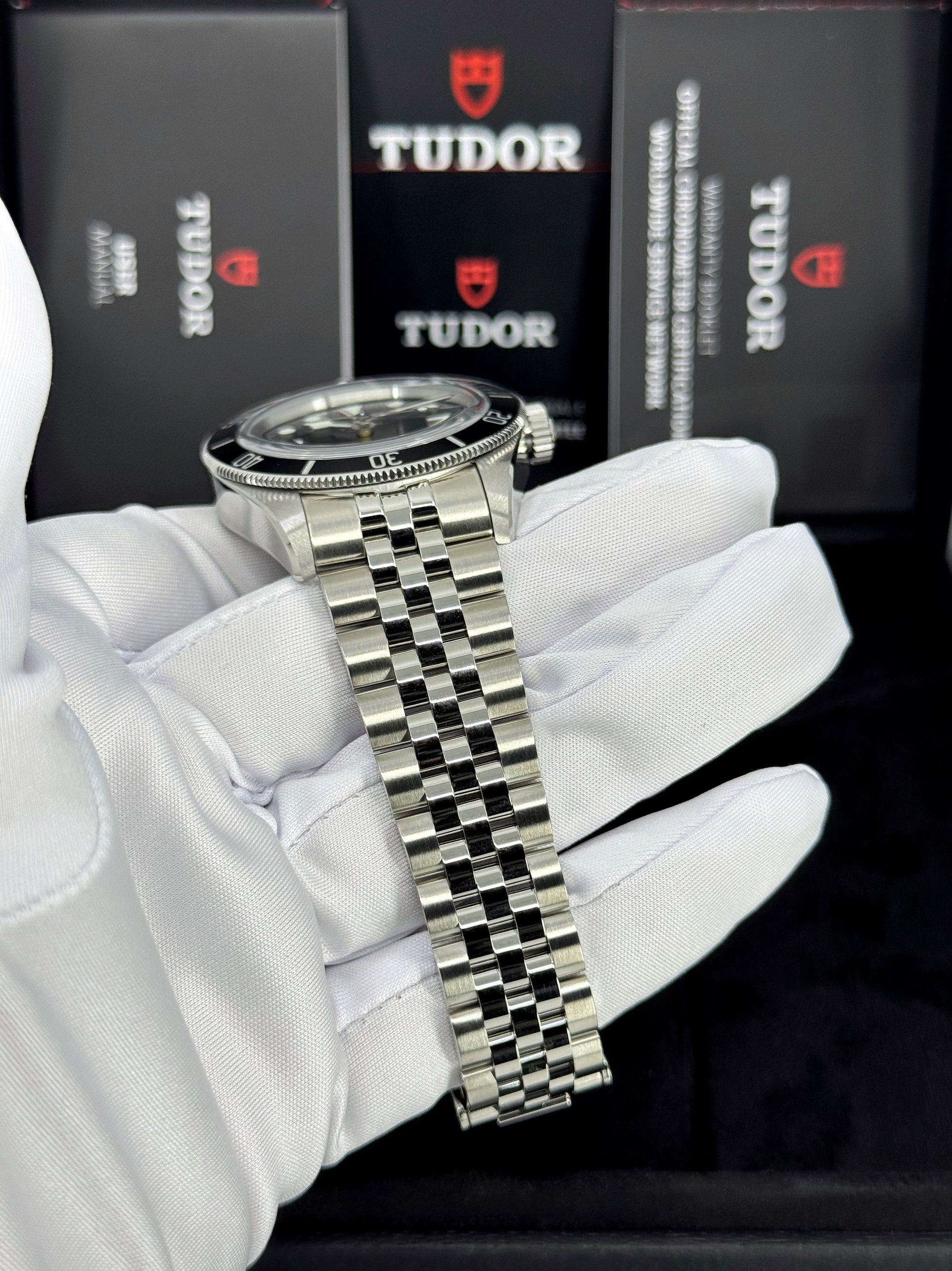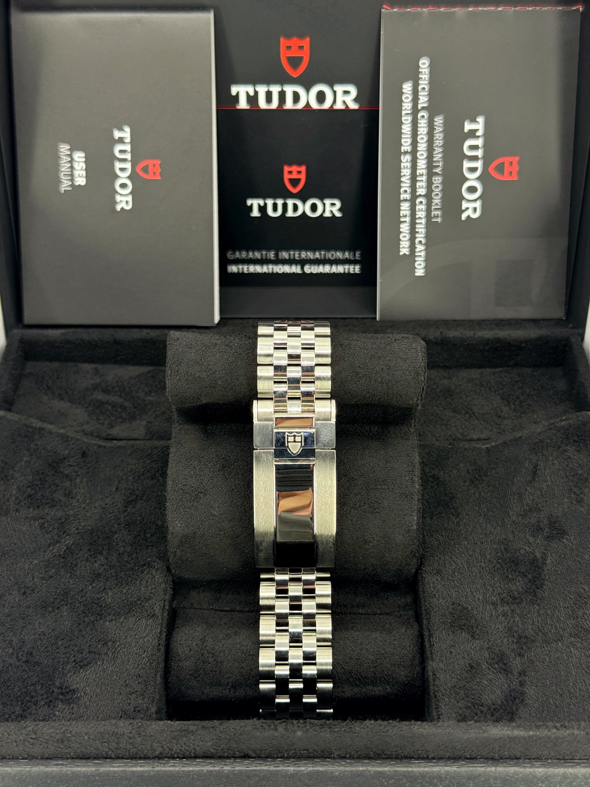 This watch is Unworn and comes complete with the original box, booklets and warranty card. Please note that it doesn't come with the white serial tag which was removed upon purchasing from the Tudor Authorized Dealer. The watch is fully linked with the standard amount of the Tudor links. If necessary, bracelet can be sized by buyer's request.
