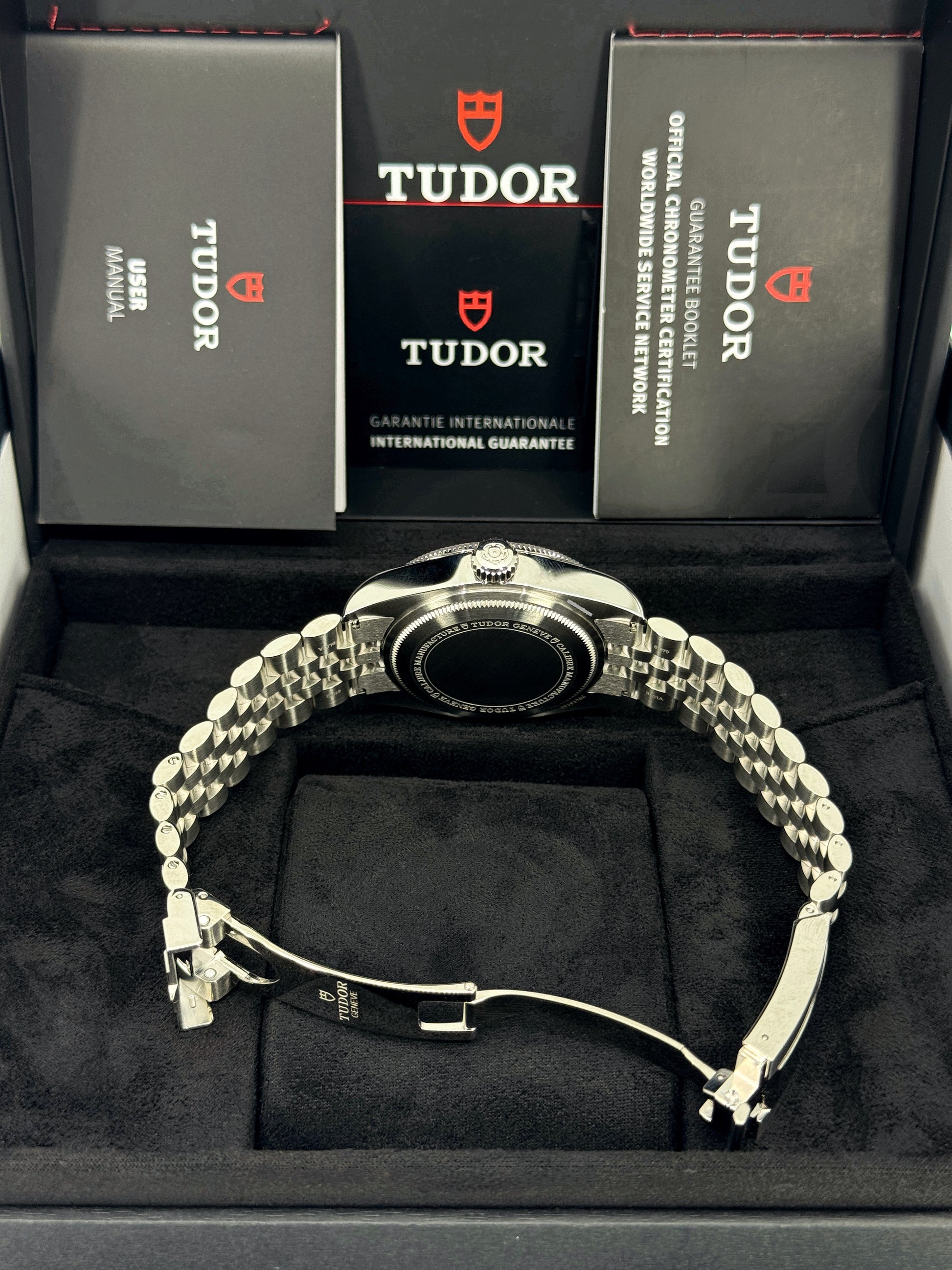 This watch is Unworn and comes complete with the original box, booklets and warranty card. Please note that it doesn't come with the white serial tag which was removed upon purchasing from the Tudor Authorized Dealer. The watch is fully linked with the standard amount of the Tudor links. If necessary, bracelet can be sized by buyer's request.